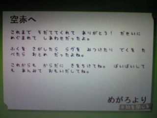 ほんとに遅れてすみません・・・ えと、乳首~発言はツレでなく空赤自身が言いました。 うへへ。 でもでも、これはあれですよね千葉さんだったから言えたんであって・・・ 今度もし黄泉さんと握手する時なんかコレはさすがにまずいなーとか、余計な妄想してますwww ★琉玖さん おお、情報ありがとうございます。聞いた事あるかも・・・。 意味はないけど、ライターさん、ヘアメイクさん、カメラマンさん等って毎回チェックしてるだけにああ、わすれてもーたがなー!!と思ってたんで、どうもですv 白衣・・・いやーどうせならムッチリvとしたあの元祖な、ミニスカートナースやってほしいでふ・・・げふv (´ム`){ナース柩たんハァハァvvv おっと鼻様が現れた!! ちょこちょこコメント返信忘れとかしちゃってて申し訳ないです・・・ 頭の中でコメ返考えてそれでもう書いた気になっていることが多々あるなーと最近思います 大丈夫か? あ、コレめっちゃおもろかった。 耳を澄ませばが大好き、、、、なんだけど聖司君ってちょっとすとーk・・・だよねという方だけ見れ!! http://www.asahi-net.or.jp/~hn7y-mur/mimisuma/mimilink07.htm あ、メロダチ募集してます(常に。)SHブラボーとかってくれたら多分即効承認すまつv そうだったか。 はいはい、やっとみてきたありーな37℃ んと・・・インタビューはいつも通りギターズと集合インタビューしか読んでません(コラ!) 柩ちゃん、可愛いな・・・。